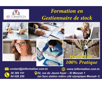 | Formation en Gestionnaire de stock IST formation est un centre de formation privé en Tunisie agrée sous le N°11/1348/14, constitués des meilleurs formateurs et qui a pour but de mettre à jour vos compétences techniques. Programme : 1) Les différents modes de suivi de stock 2) Les documents et leur impact sur le stock (Les différents documents et le mouvement de stock: entrée, sortie, Bon de livraison, Bon de retour) 3) Procédure d’inventaire (La saisie d’inventaire, Les états d’inventaire) 4) La gestion Multi Emplacement de stockage (Création des emplacements de stockage...) 5) Saisie d’inventaire par emplacement, Gestion des déstockages, Les états multi-emplacements) 6) Organiser l’activité et les opérations de réception, stockage et mise à disposition des produits 7) Gérer les stocks et les entrepôts de matières premières et de produits finis 8) Apporter les améliorations nécessaires pour optimiser la gestion des stocks 9) Gestion des inventaires 10) Contrôle de tous mouvements de stocks et garant de la sécurité de stocks ; ________________________________________ Formation 100% Pratique Animé par un Expert Certificat reconnu par l’état (agrément n°11/1366/15) Groupe limité à 6 personnes Possibilité du paiement par facilité ________________________________________ Pour plus d`information contactez : Tel:(+216) 36 389151 GSM:(+216)94 028 250 Email : contact@istformation.com.tn Site web : www.istformation.com.tn Adresse: 02, rue du Jeune foyer – El Menzah 1 (en face station métro Menzah 1) | |||||||||||||||||