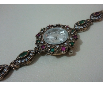 | Une très belle montre en argent , décoré avec des rubis et des émeraudes Poids 49 grammes | |||||||||||||||||