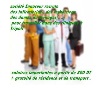 | شركة النصر للخدمات و السياحه المغاربيه تنتدب اطباء، ممرضات و ممرضين، مبنجين،عمله بالتنظيف للعمل بمصحه في طرابلس (ليبيا) مع مجانية السكن،النقل و الاكل، لمن يهمه الامر،الرجاء بعث سيره ذاتيه مع تحديد العمل المطلوب او التصال مباشره بالفيسبوك messadiasma@hotmail.fr | |||||||||||||||||