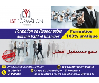 | Formation en Responsable administratif et financier IST formation est un centre de formation privé en Tunisie agrée sous le N°11/1348/14, constitués des meilleurs formateurs et qui a pour but de mettre à jour vos compétences techniques. Programme : 1) Saisie et traitement des écritures comptables sur logiciel sage. 2) Justificatif et lettrages des comptes. 3) Préparation déclaration d’impôt-mensuelles, acompte provisionnel ….). 4) Préparation déclaration CNSS et déclaration d’employeur. 5) Etablissement des états financiers (bilan, état de résultat). 6) Les organismes sociaux, Les bases de cotisations 7) Préparation de la situation financière de l’entreprise. 8) Suivi et analyse financier de la situation de l’entreprise. 9) Préparation de tableau de bord de suivi des budgets de trésorerie 10) Analyser les chiffres, les écarts et proposer des solutions________________________________________ Formation 100% Pratique Animé par un Expert Certificat reconnu par l’état (agrément n°11/1366/15) Groupe limité à 6 personnes Possibilité du paiement par facilité ________________________________________ Pour plus d`information contactez : Tel:(+216) 36 389151 GSM:(+216)94 028 250 Adresse: 02, rue du Jeune foyer – El Menzah 1 (en face station métro Menzah 1) | |||||||||||||||||