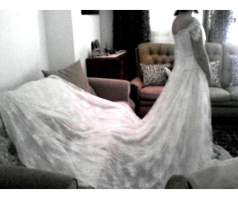 | Robe de fiancailles / mariage blanche tissu:dentelle brodée et satin disponible avec cerceau et voile | |||||||||||||||||||