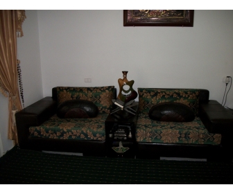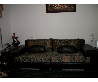| un beau salon de couleur tete de neigre décoré de croco sur les cotés 6places;vous pouvez la modifié selon vos choix de couleur et de places: couleur vert avec les housses et interieur couleur beige+caramel.Intact presque neuf agé de 2ans +sa TABLE BASSE +TABLE TV | |||||||||||||||||