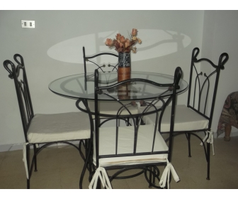 | A cause de voyage à l’étranger ; je vends ma table impeccable en fer forgé avec un plateau en verre et 4 chaises., très peu utilisé en bon état. Table et chaises assorties. | |||||||||||||||||