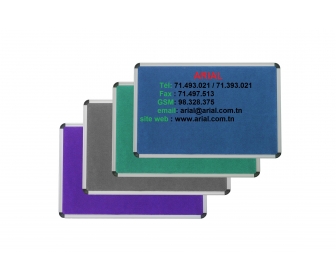 | Caracteristiques - Cadre élégant en profil aluminium strié. - Coins arrondis. - Surface magnétique ou effaçable à sec. - Écriture par feutre. - Plumier sur toute la longueur du tableau. - Design moderne. - Fixation simple au mur. Description Les tableaux blancs à surface magnétique sont sans aucun doute les tableaux d’écriture les plus appréciés par les utilisateurs. Ces tableaux ont la même surface que les tableaux effaçable à sec mais cette surface est magnétique, et permet outre l’écriture par feutre, d`afficher des documents à l`aide d`un aimant. L’effacement se fait au moyen d`une brosse ou simplement avec un chiffon légèrement mouillé. La surface d’écriture est soigneusement testée pour garantir la facilité d’écriture et l’effacement ; Ces tableaux sont spécialement conçus pour une utilisation très intensive aux écoles et aux bureaux. | |||||||||||||||||