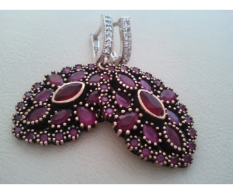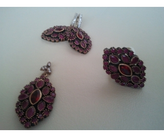 | Parure en argent tamponné décorée avec des pierres de rubis Poids 47 grammes | |||||||||||||||||