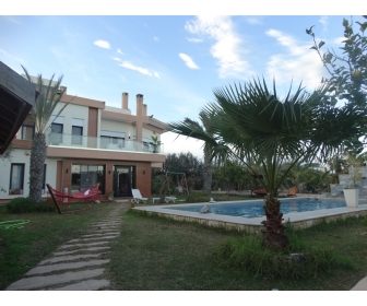 | VILLA CARMEN V875 A vendre chez l`agence TPS IMMOBILIERE Hammamet, une somptueuse villa de campagne située à Tazarka. La villa est érigée sur deux niveaux et bien orientée sur un beau terrain clos de 5372 m², avec une piscine privative de 12/5m, sans aucun vis-à-vis, elle est disposée comme suit: Au rez chaussée: deux salons avec cheminée, un séjour, une salle à manger, un coin billard, une cuisine moderne bien équipée, un débarras et une salle d’eau. Au 1er étage: trois chambres à coucher avec des balcons, un séjour, deux cheminées et une salle de bain. A l’extérieur: un loge gardien, un espace gazonné ainsi qu`une belle terrasse couverte en bois avec sonorisation et barbecue pour vos grillades d`été, une belle piscine entourée d’un jardin planté, une large variété d`arbres fruitiers tel que : des oliviers, des orangers, des citronniers, des figuiers, des abricotiers, des grenadiers, des vignes, des bananiers, des amandiers, et bien plus, ansi qu`une étable, un sondage puissant combiné avec un fossé de récupération d`eau de pluie suffisant pour irriguer toute la plantation et un parking pour plusieurs voitures. En été comme en hiver, cette maison de campagne entourée de vergers est un excellent refuge. Nos agents sont à votre disposition pour toutes informations et conseils nécessaires afin de disposer du bien. Veuillez contacter Mme SIRINE. | |||||||||||||||||||||